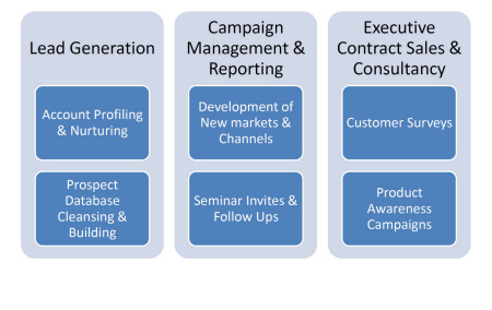 We have a range of services in addition to lead generation, such as database building & cleansing, channel recruitment, customer surveys, seminar attendance, and senior sales account management and coaching.